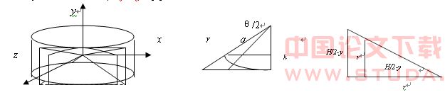 柱面投影变换及其反变换算法的核心是投影变换公式,为此建立坐标系,如图4所示。原始图象I、投影柱面图象J和柱面K,原点为观察点O(投影中心)。设柱面半径为r,投影宽度角为θ,图象宽度为W,高度为H。能很容易得到柱面图象的宽度为r×sin(θ/2),高度仍为H。对图象I上的任意一点P,假设它在图象上的坐标为(x,y),P在柱面图象J上的对应点Q,假设Q在J上的坐标是(x’,y’)。[5]
